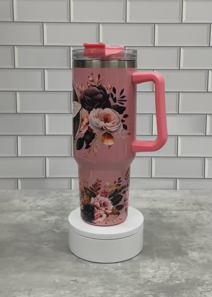 Indulge in your favorite cold beverages with our 40oz Butterfly Tumbler! Keep them icy cold for hours in this Pink Shimmer Tumbler. The perfect accessory for on-the-go adventures, this tumbler will keep your drinks refreshing while adding a touch of elegance with its butterfly design.