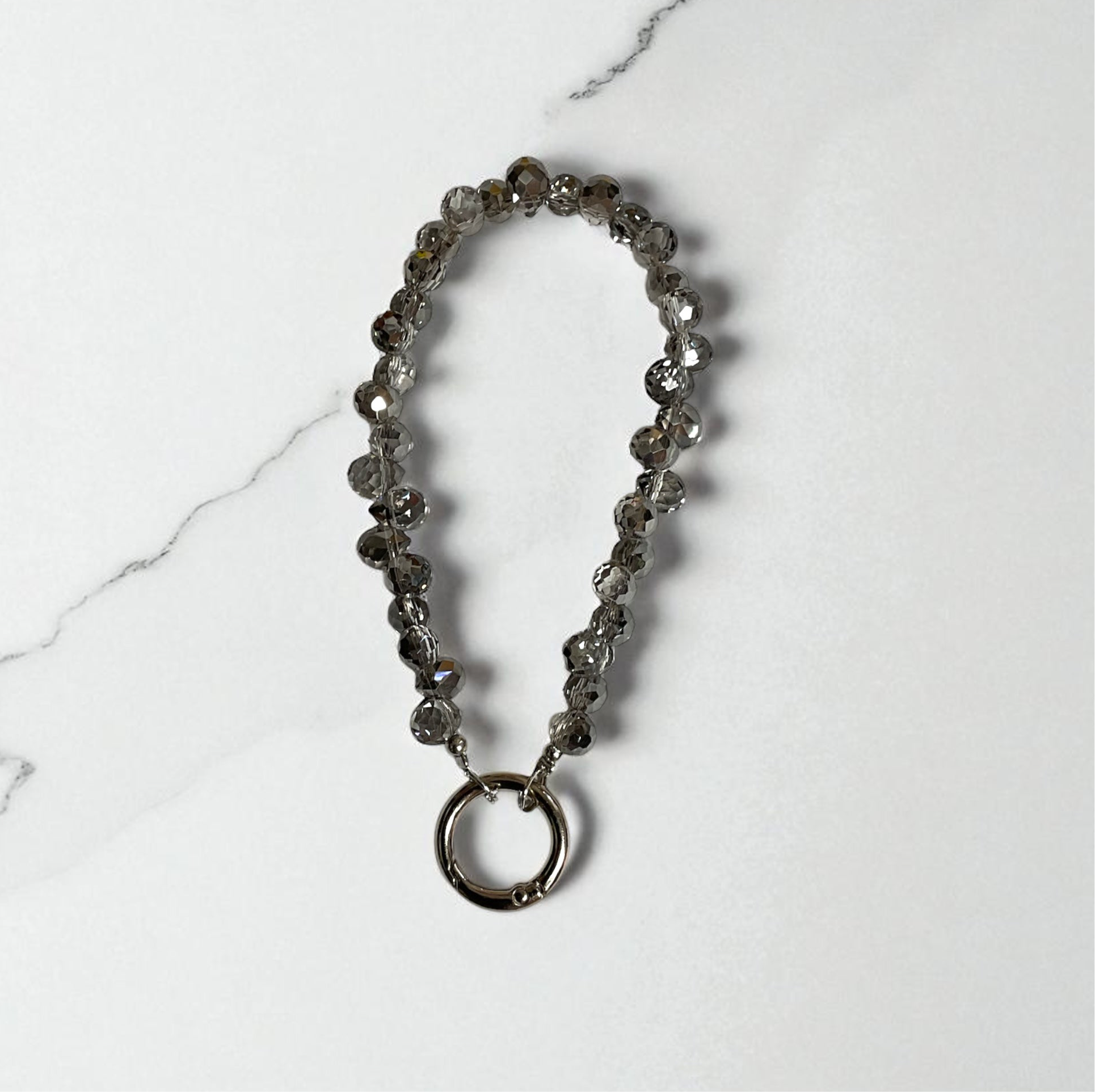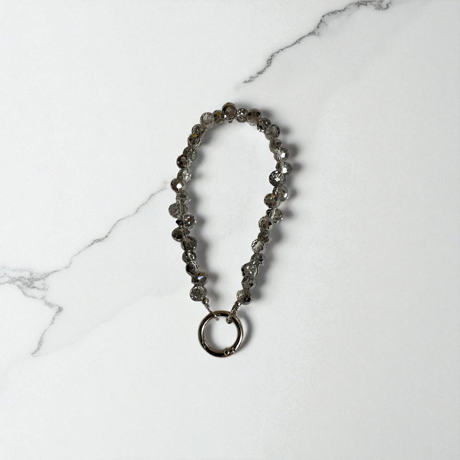 Elevate your everyday essentials with this gray beaded cellphone wristlet keychain—a chic blend of function and style. Handcrafted with smooth beads, it doubles as a purse charm and wrist strap, adding a touch of sophistication while keeping your keys, phone, or bag secure.
