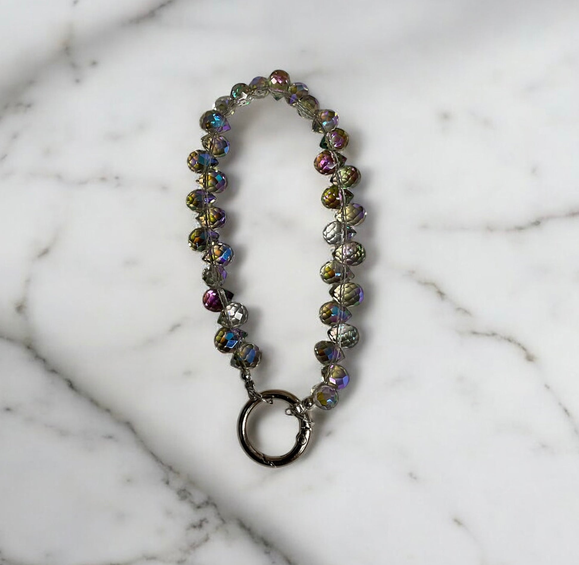 Bring a vibrant touch to your essentials with this pink, green, and purple beaded cellphone wristlet keychain—a playful yet practical accessory that combines color and function. Handcrafted with multicolor beads, it works as a purse charm, keychain wristlet, or phone strap, making it a versatile addition to your everyday style.