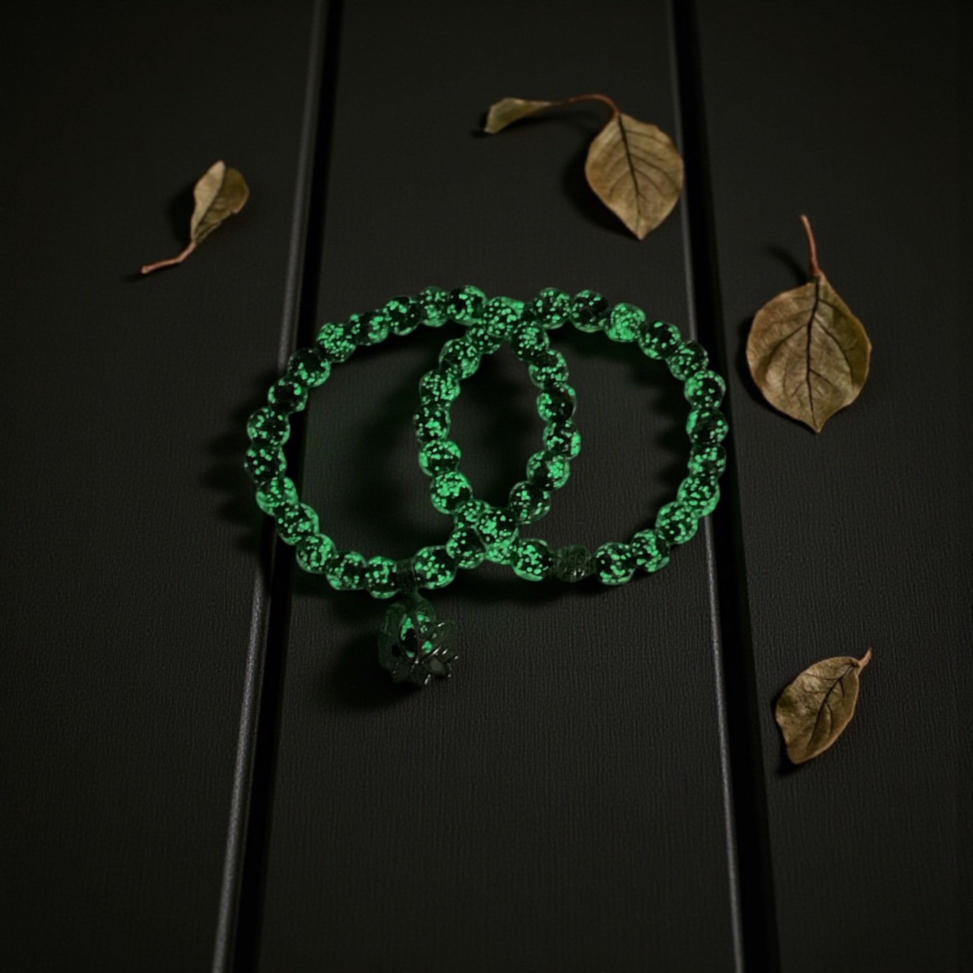 Unleash the enchanting powers of these elegant, handmade bracelets! Adorned with mesmerizing glow-in-the-dark beads and a dazzling lotus charm, each bracelet is a true work of art. Perfect for adding a touch of whimsy to any outfit, these bracelets are sure to turn heads and awaken the senses.