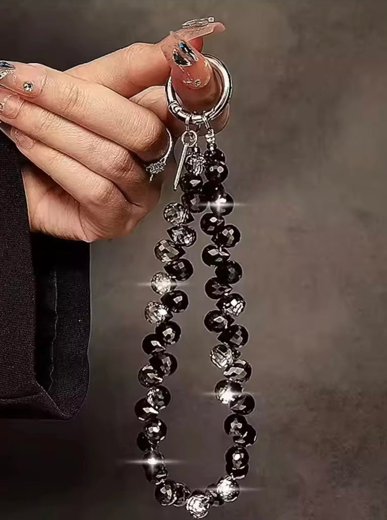 Sleek and versatile, this black beaded cellphone wristlet keychain combines timeless style with everyday function. Handcrafted with polished black beads, it doubles as a purse charm, keychain wristlet, or phone strap, making it a minimalist accessory that enhances any look.