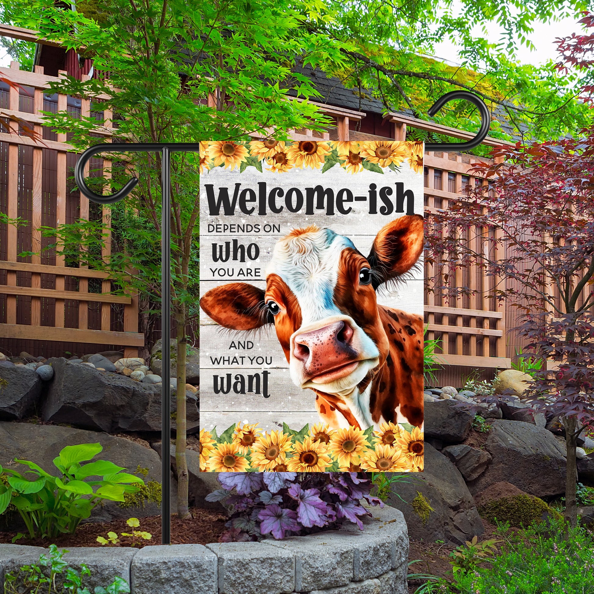 Cow Garden Flag – Cute Farmhouse Porch Flag, Garden Decoration, Housewarming Gift, Rustic Outdoor Flag for Yard or Patio