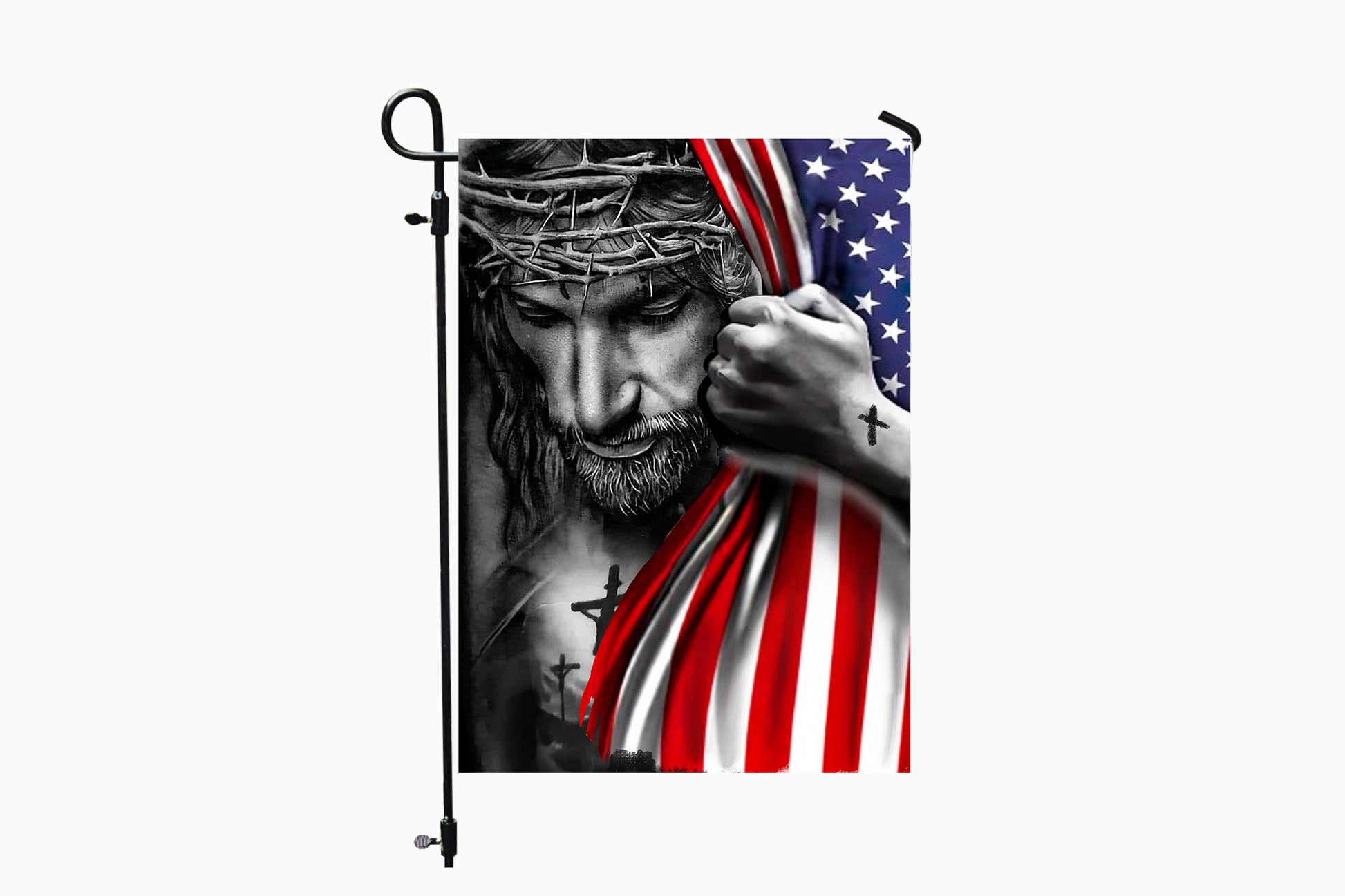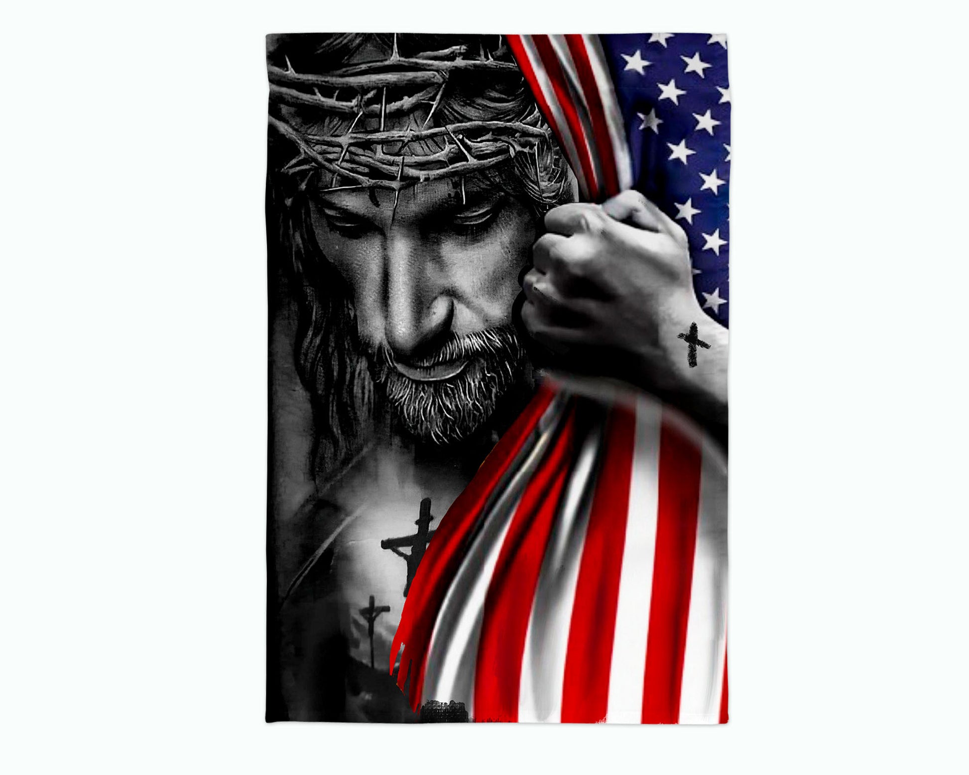 Jesus and American Flag Garden Flag, Garden Decoration, Housewarming Gift, Porch Flag
