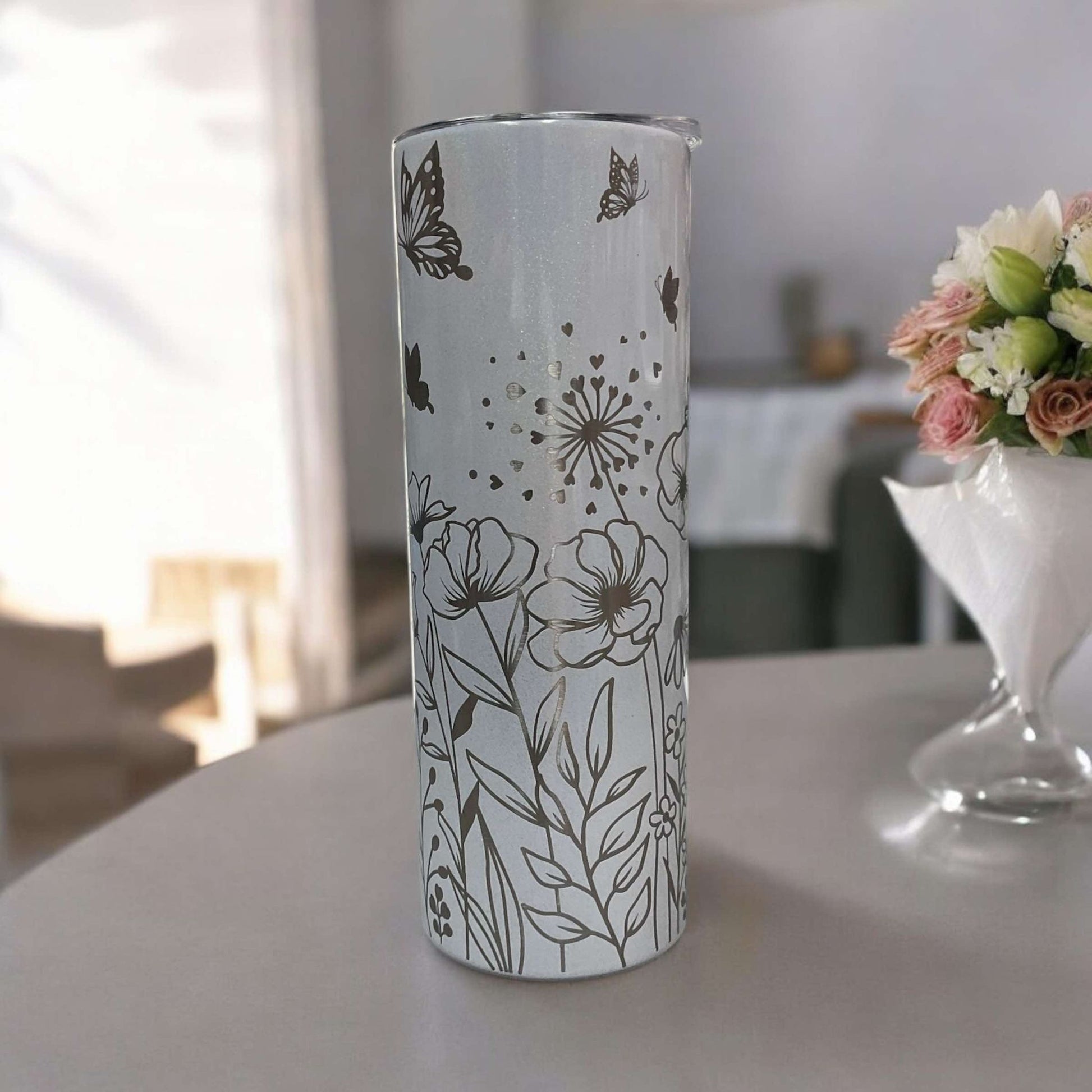 Fuel your passion for a cause with our Floral Engraved Tumbler! The White Shimmer exterior and laser engraved design make for a stylish and durable 20oz tumbler. Show your support for breast cancer awareness while staying hydrated and inspired.
