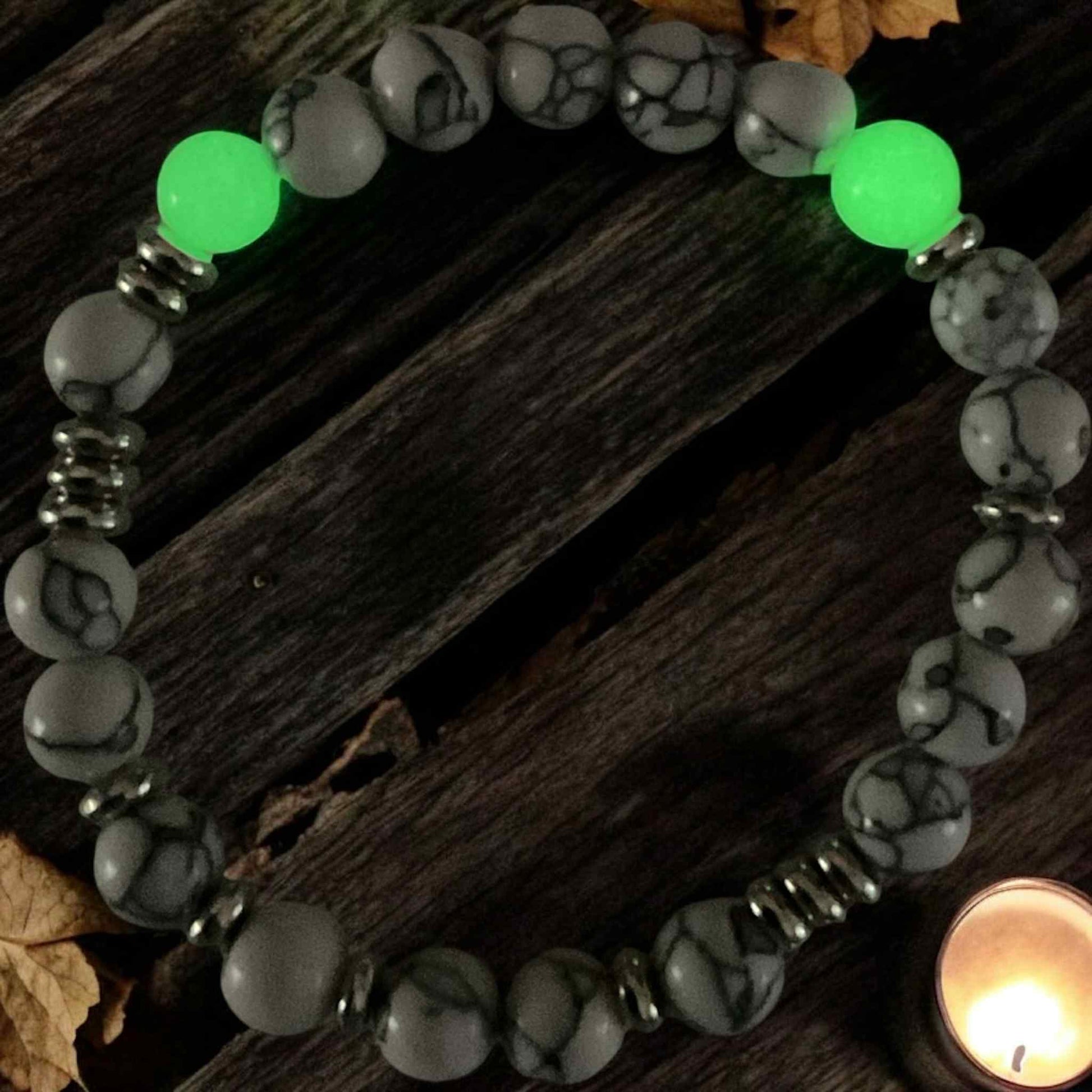 At Night there are 2 glow in the dark beads: 1 at the beginning 1 at the end of the message.