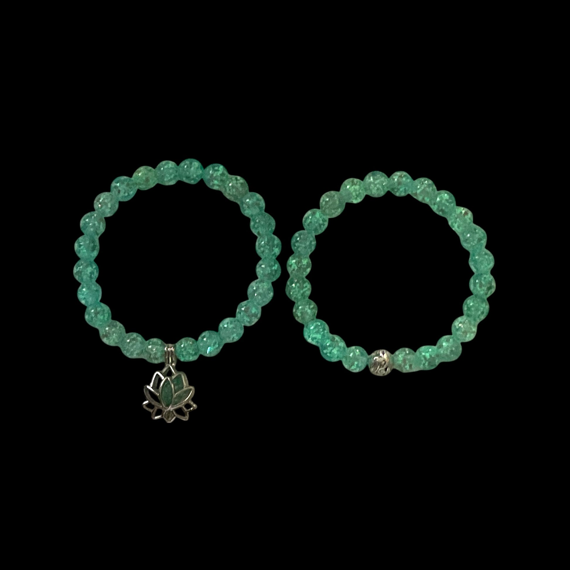 Unleash the enchanting powers of these elegant, handmade bracelets! Adorned with mesmerizing glow-in-the-dark beads and a dazzling lotus charm, each bracelet is a true work of art. Perfect for adding a touch of whimsy to any outfit, these bracelets are sure to turn heads and awaken the senses.